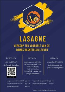 Lasagne verkoop ten voordele van onze Blue Tigers!